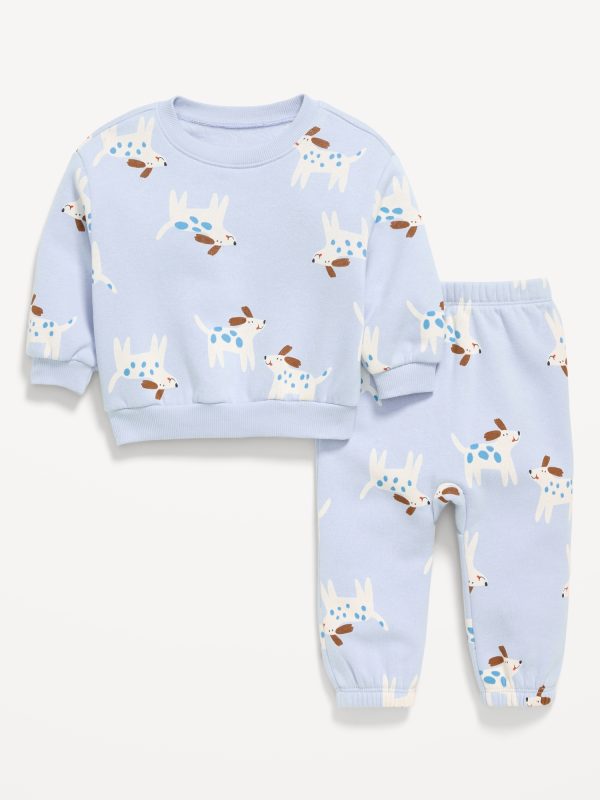 Printed Henley Sweatshirt and Sweatpants Set for Baby: crew neck, long sleeves, two-button henley placket, matching sweatpants, elasticized waistband, patch pocket at back, all-over print, #802716