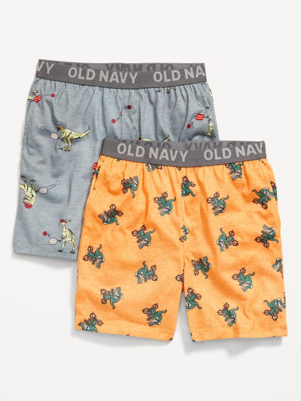 Printed Jersey-Knit Pajama Jogger Shorts for Boys: elasticized waistband, repeating Old Navy logo at waist, diagonal on-seam pockets, all-over print, #684002