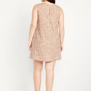 Printed Linen-Blend Mini Shift Dress: high neck, sleeveless, side-seam pockets, button-loop closure at nape, darted bust, all-over floral and fruit print, #766928