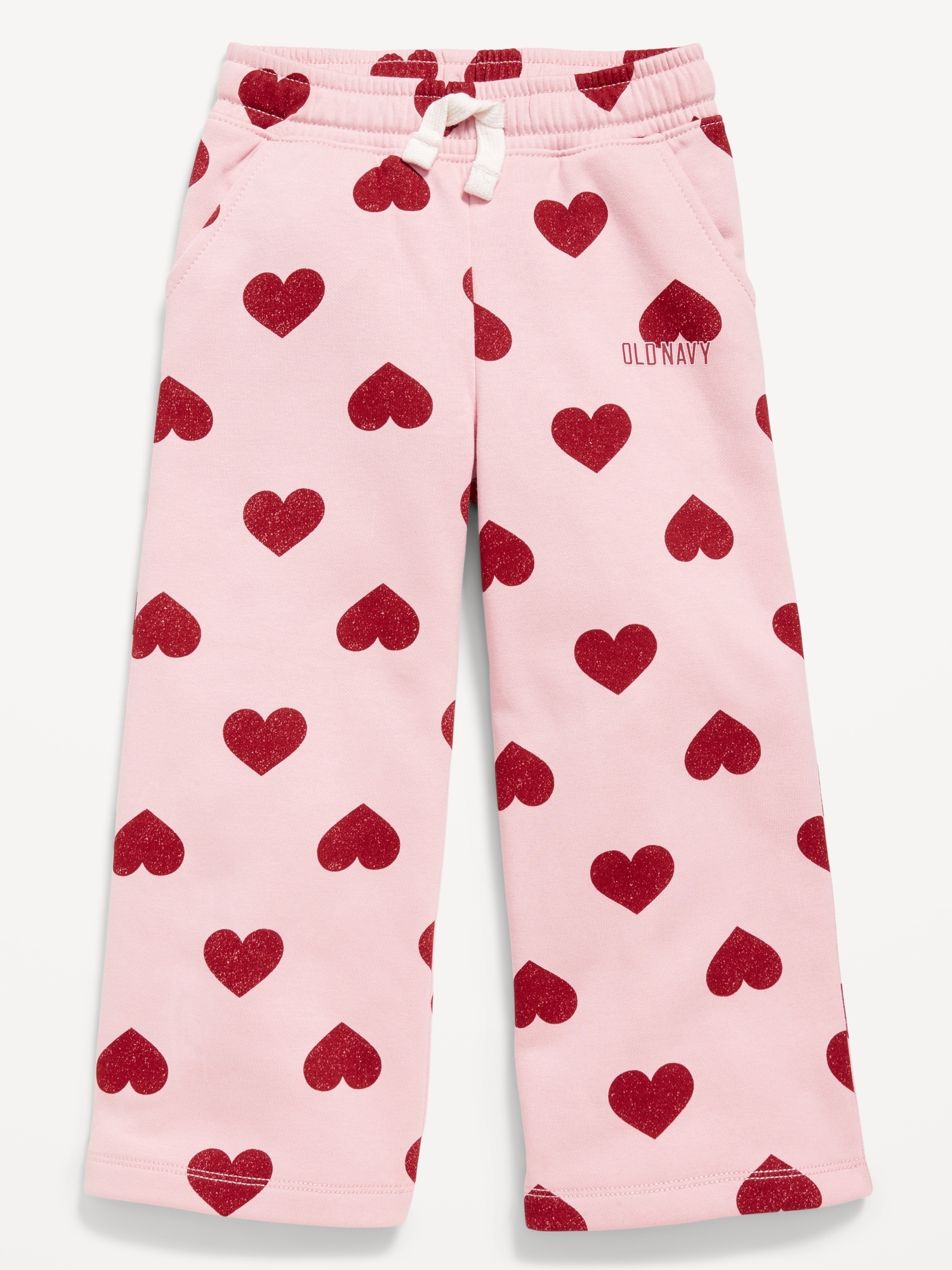 Printed Logo-Graphic Wide-Leg Sweatpants for Toddler Girls: elasticized waistband, functional drawstring, diagonal on-seam pockets, logo graphic at hip, all-over pattern, wide leg, available exclusively online and at old navy outlet stores., #800955