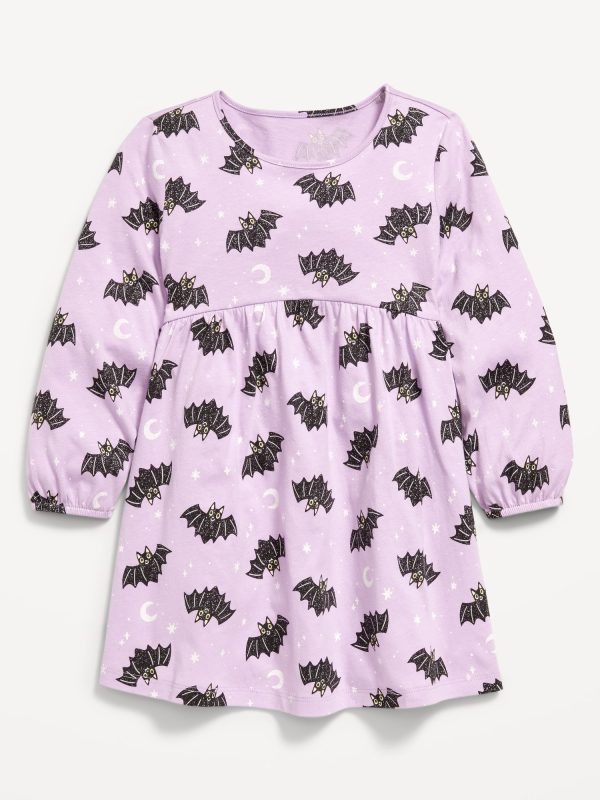 Printed Long-Sleeve Dress for Toddler Girls: Mix Match Go Productscoop neck, long puffy sleeves, seamed waist, all-over print, #805579