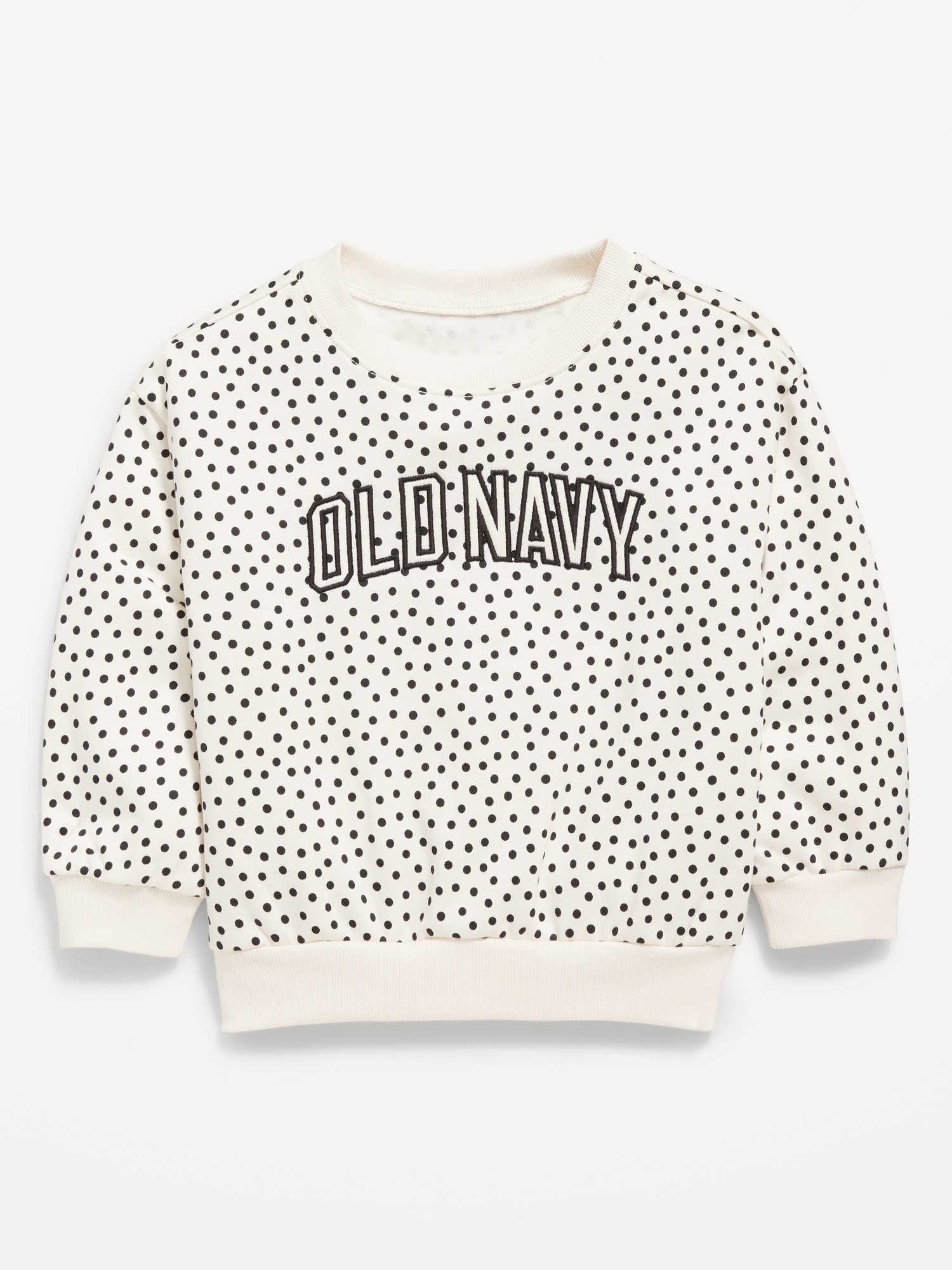 Printed Long-Sleeve Logo-Graphic Sweatshirt for Toddler Girls: crew neck, long sleeves, drop shoulders, logo graphic, all-over print, available exclusively online and at old navy outlet stores., #800827