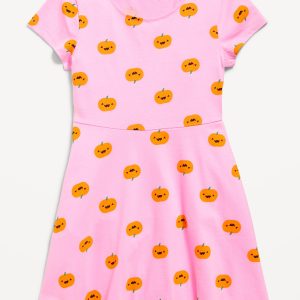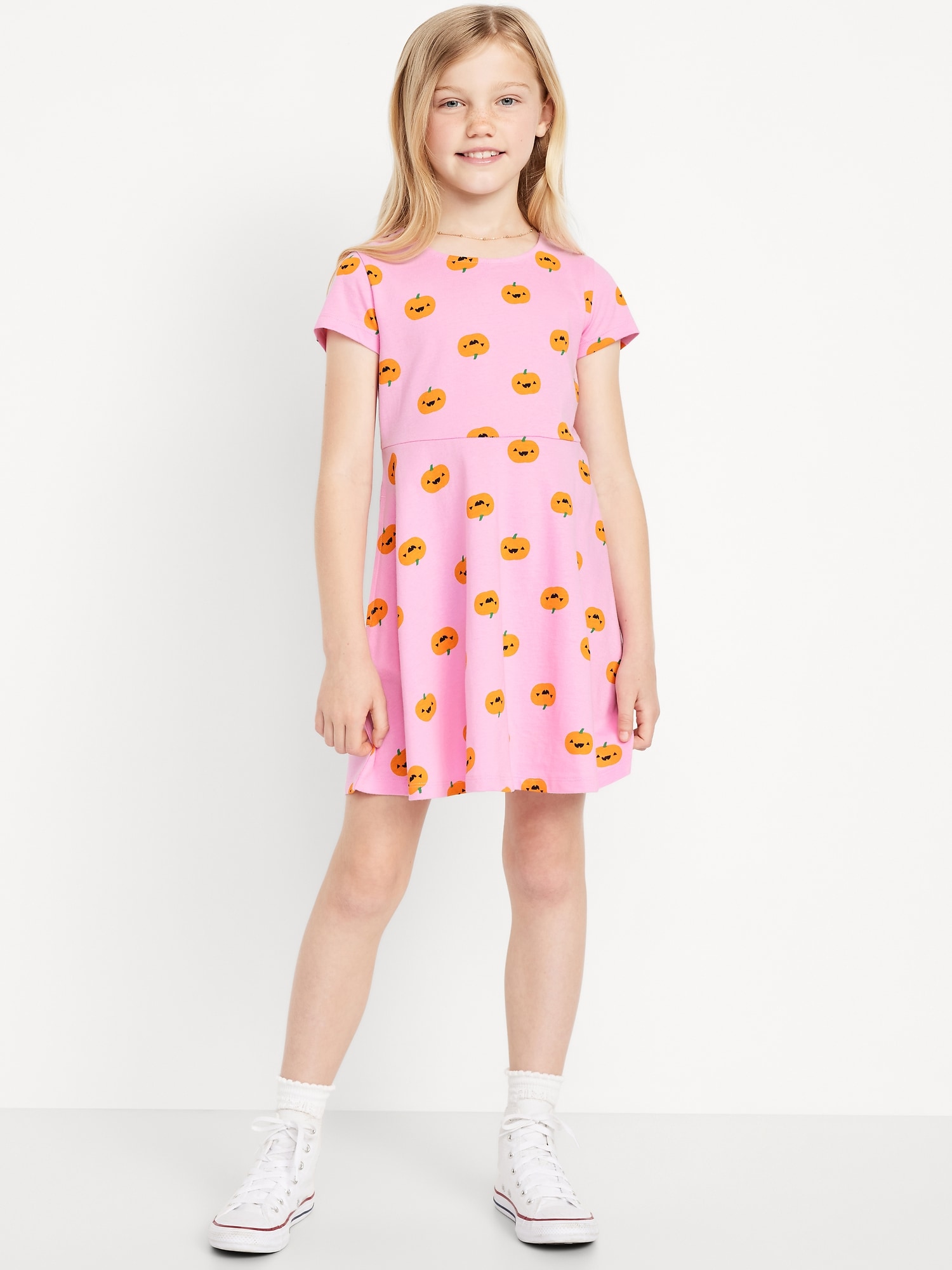 Printed Short-Sleeve Fit and Flare Dress for Girls