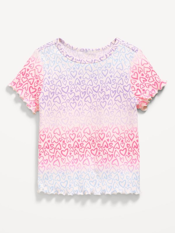 Printed Short-Sleeve Lettuce-Edge T-Shirt for Toddler Girls