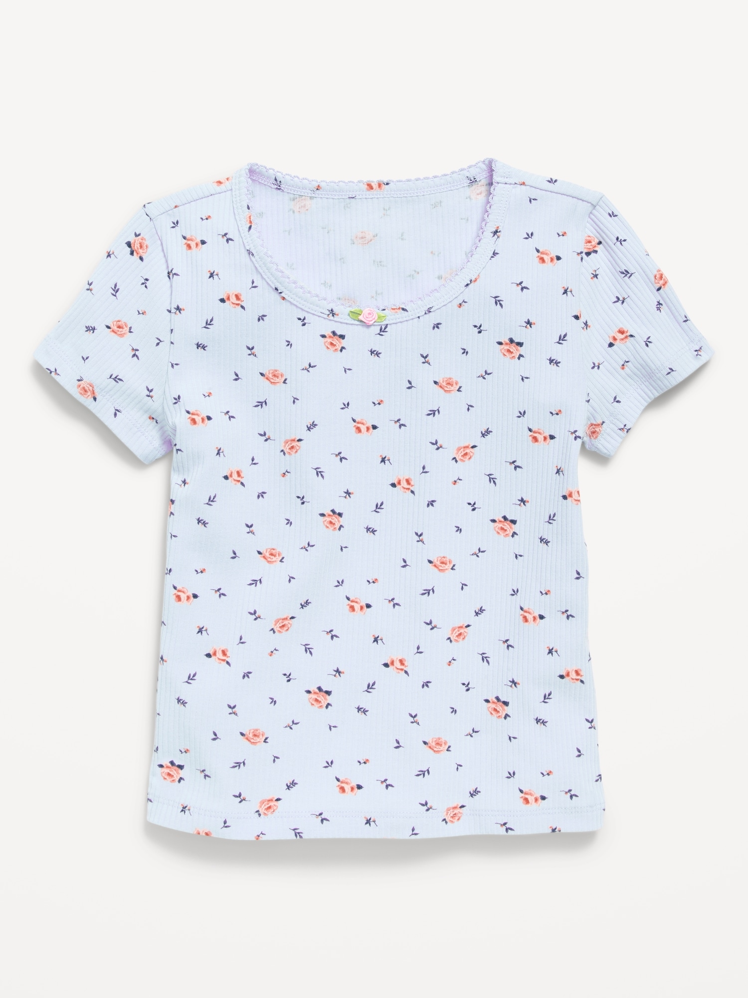 Printed Short-Sleeve Ribbed T-Shirt for Girls