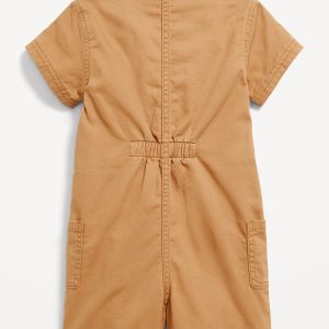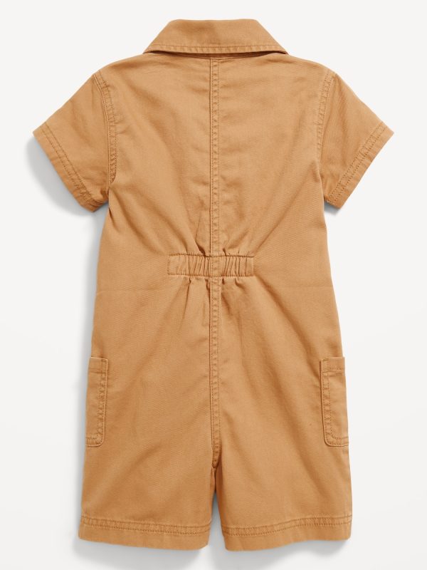 Printed Short-Sleeve Utility Twill Romper for Toddler Girls