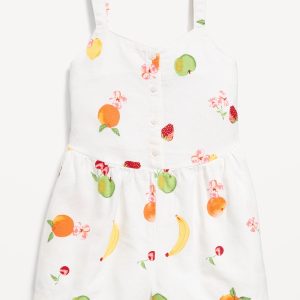 Printed Sleeveless Button-Front Linen-Blend Romper for Girls