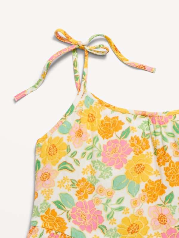 Printed Sleeveless Double-Weave Tiered Dress for Girls