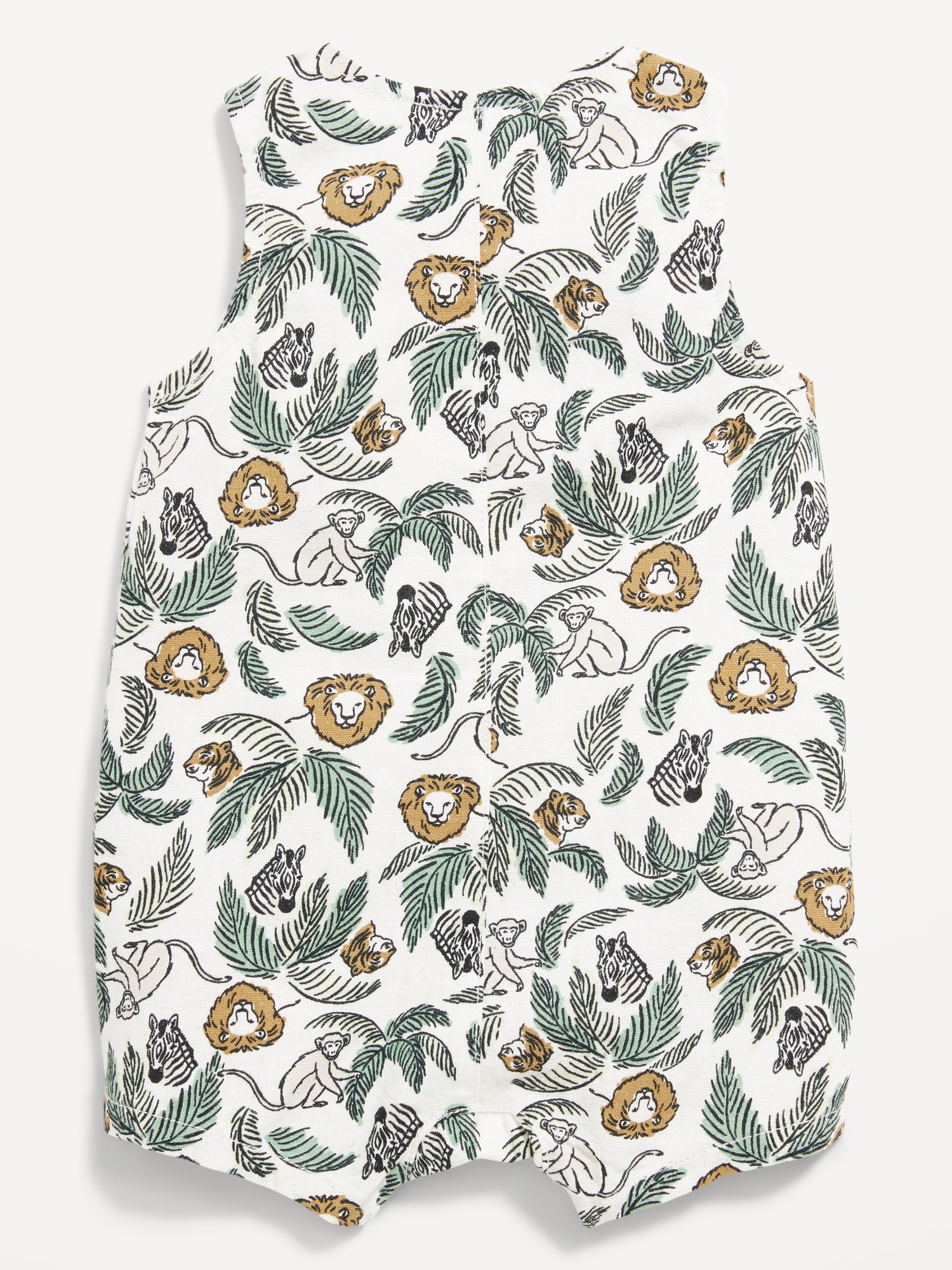 Printed Sleeveless Linen-Blend Henley One-Piece Romper for Baby