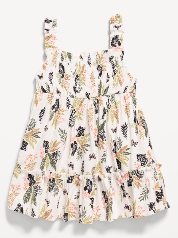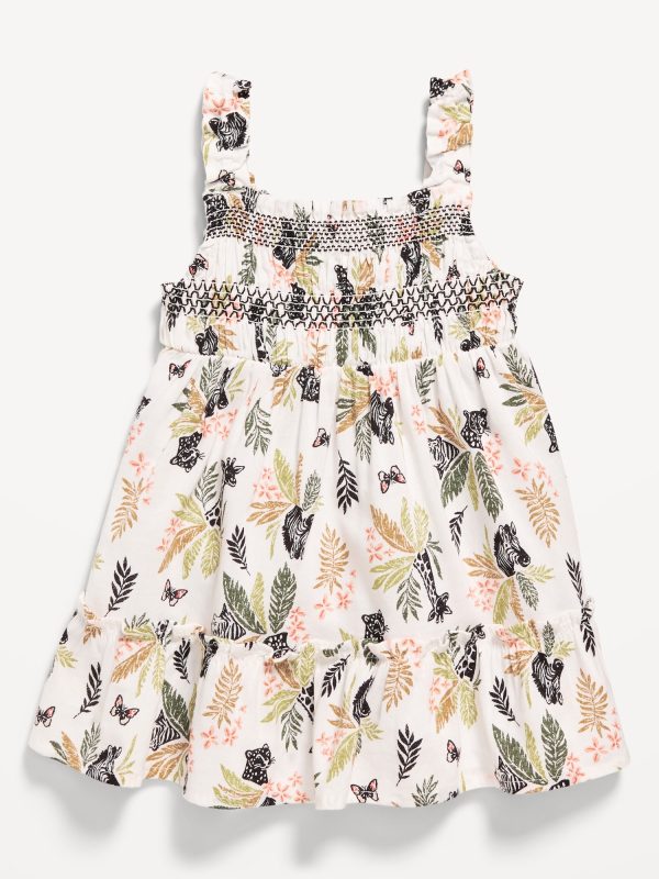 Printed Sleeveless Ruffle-Trim Smocked Dress for Baby