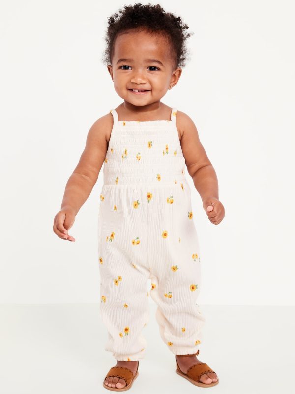 Printed Sleeveless Smocked Jumpsuit for Baby