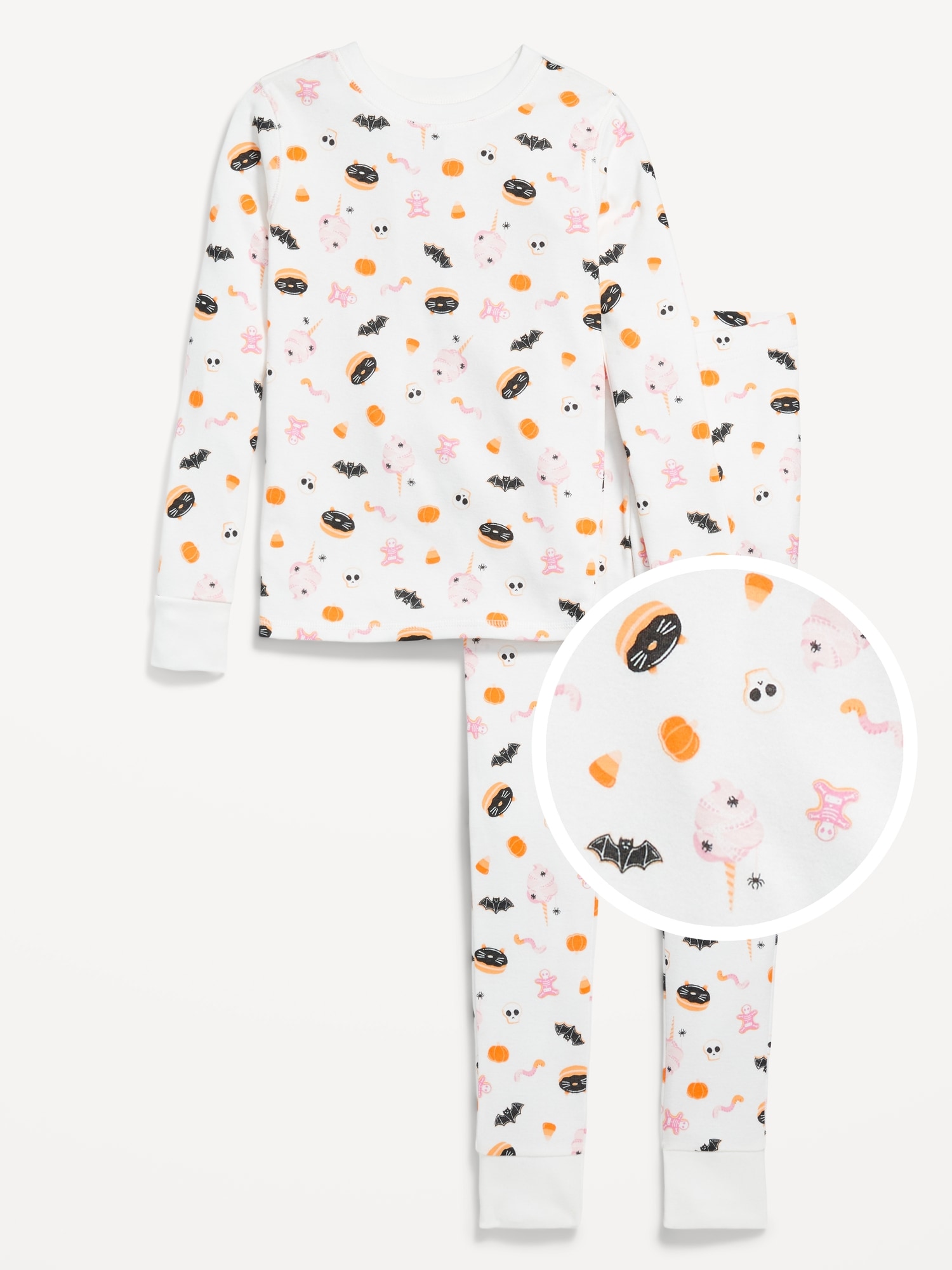 Printed Snug-Fit Graphic Pajama Set for Girls: If you’ve got it, haunt it—in our matching jammies.crew neck, long sleeves, matching pajama pants, elasticized waist, all-over print, online exclusive, #804192