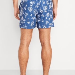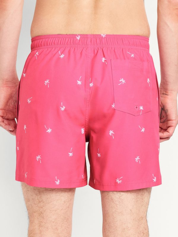 Printed Swim Trunks — 5-inch inseam: elastic-drawstring waistband, on-seam pockets, back pocket with grommet drain, built-in mesh briefs, pull-on style, all-over cocktail print, #766289