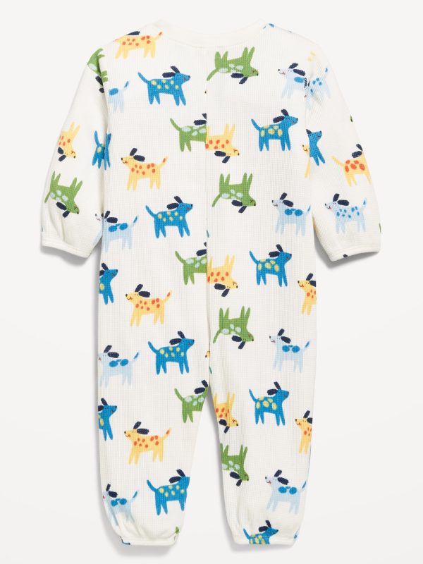Printed Waffle-Knit Henley One-Piece for Baby: crew neck, two-button henley placket, long sleeves, hidden snaps along inseam, #804450