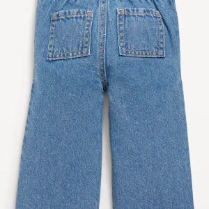 Pull-On Baggy Utility Jeans for Baby: high rise, elasticized waistband, decorative button closure, faux fly, diagonal on-seam utility pockets, patch pockets at back, #806252