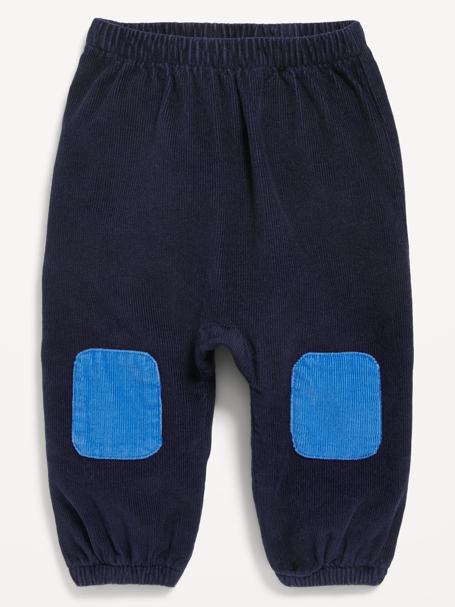 Pull-On Corduroy Knee Patch Pants for Baby: elasticized waistband, patch pocket at back, knee patches, elasticized leg cuffs, easy pull-on style, #802715