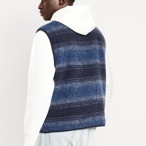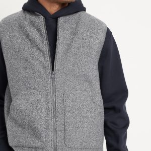 Relaxed Boiled Wool Vest: rib-knit bomber collar, front patch pockets, full-zip front, hanging loop, #800312