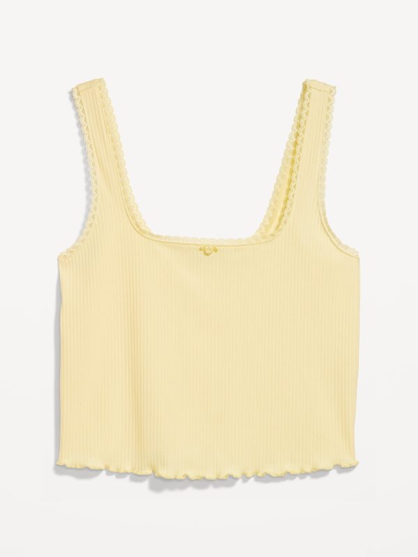 Rib Cropped Pajama Tank Top: ruffle-trim scoop neck, wide straps, lettuce-edge hem, #707474