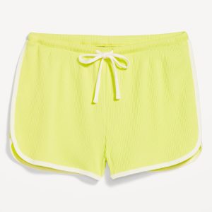 Ribbed Pajama Shorts: elastic-drawstring waistband, dolphin hem, pull-on style, prints vary, #766782