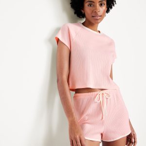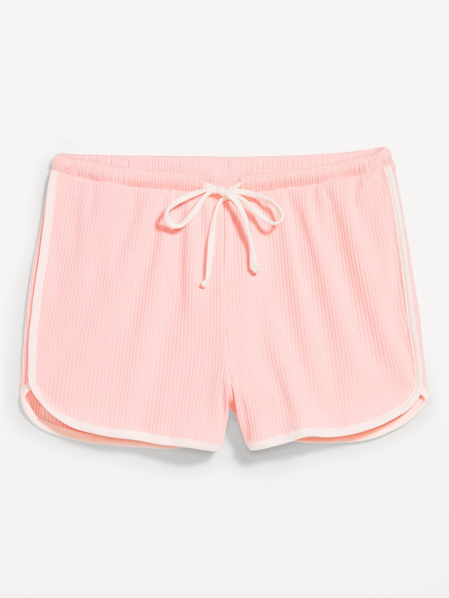Ribbed Pajama Shorts: elastic-drawstring waistband, dolphin hem, pull-on style, prints vary, #766782