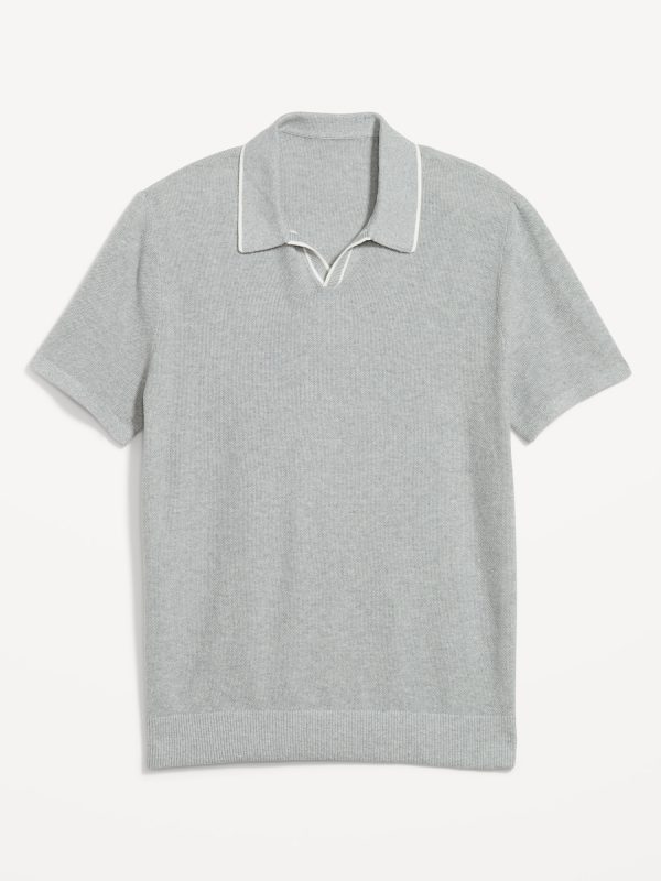 Ribbed Polo Sweater: spread collar, short sleeves, buttoned placket, pullover style, #802042