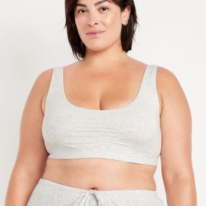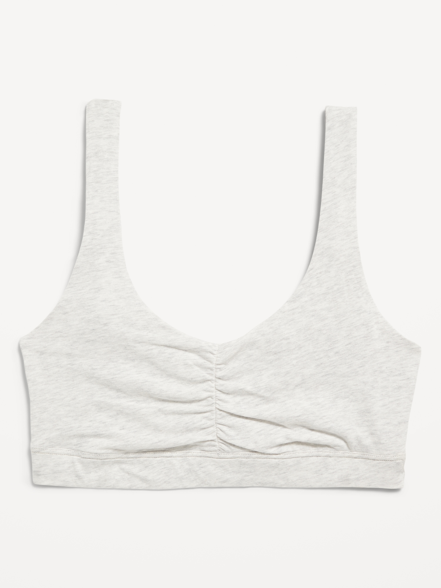Ruched Cotton Bralette: v-neck, wide straps, front ruching, elastic hem, #800554