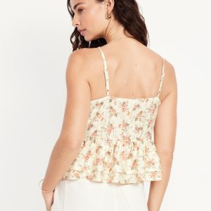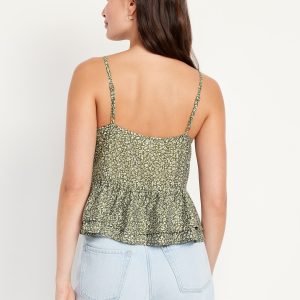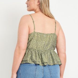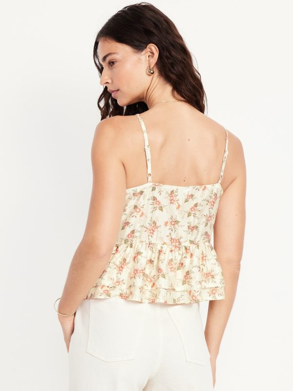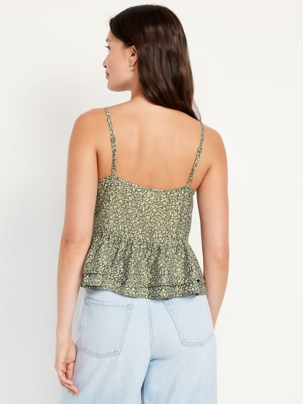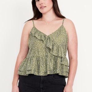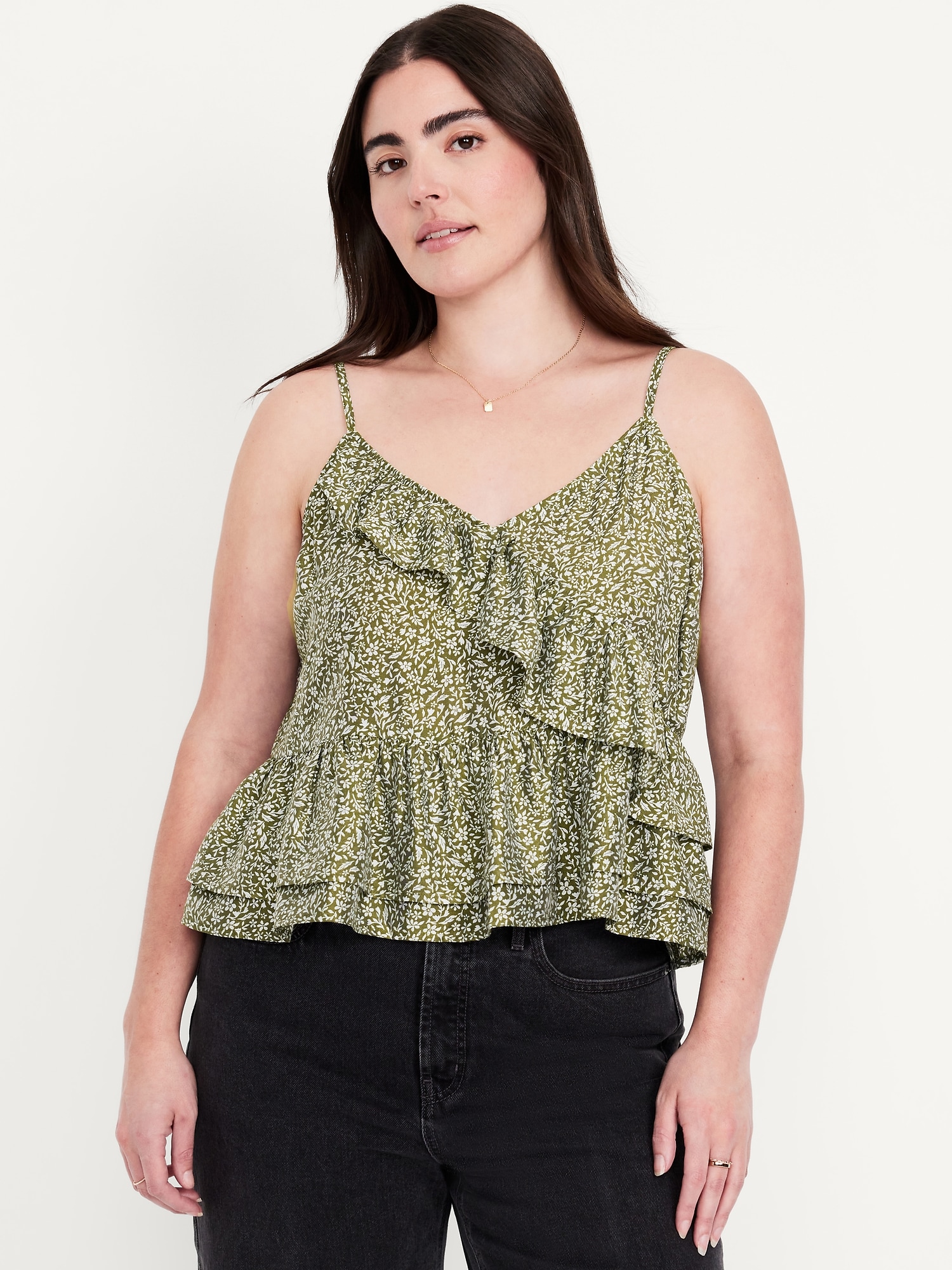 Ruffle Cami Top: v-neck, adjustable spaghetti straps, front ruffle trim, shirred peplum hem, #805745