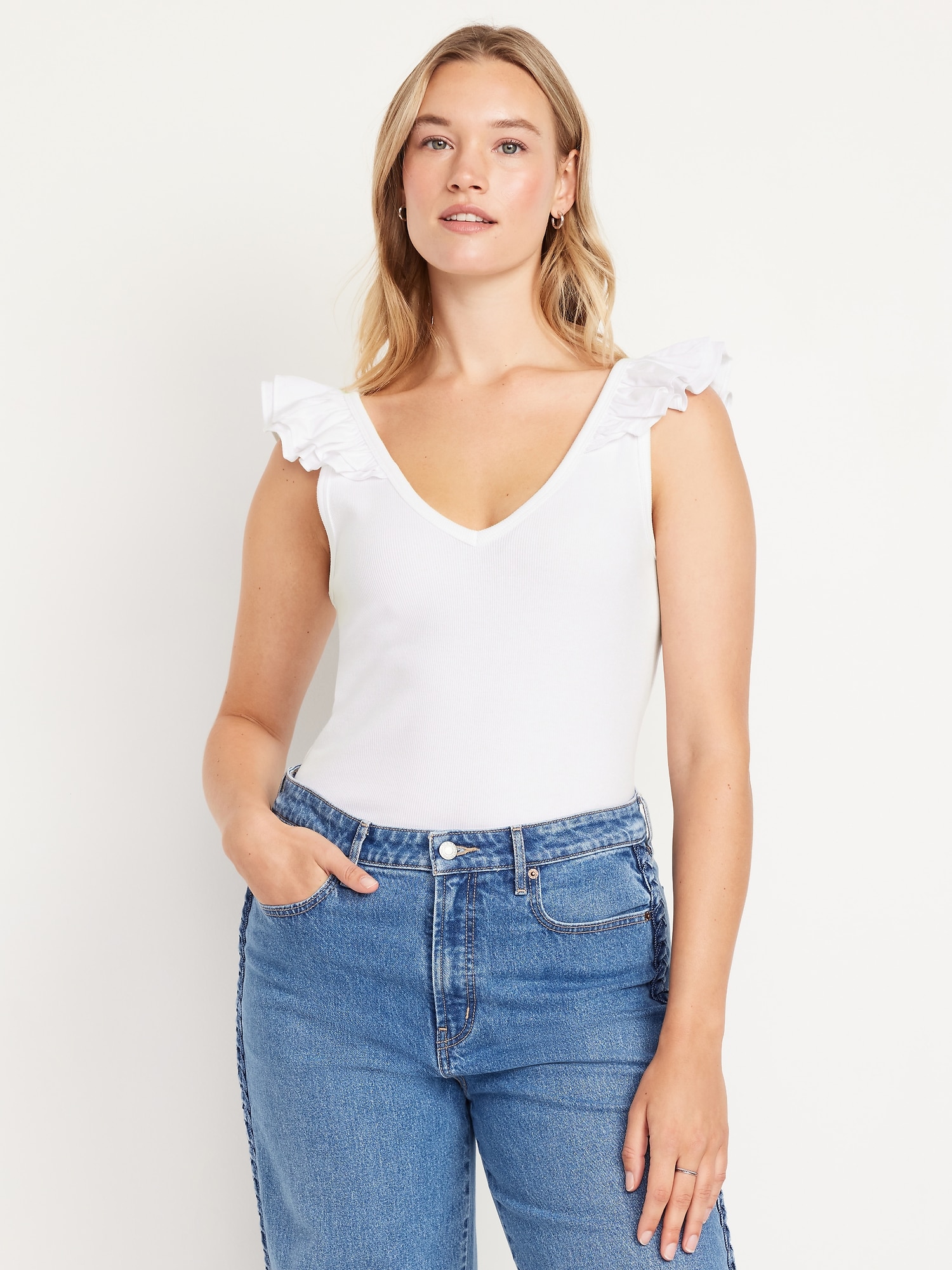 Ruffle-Trim Mixed Material Top