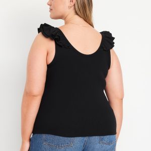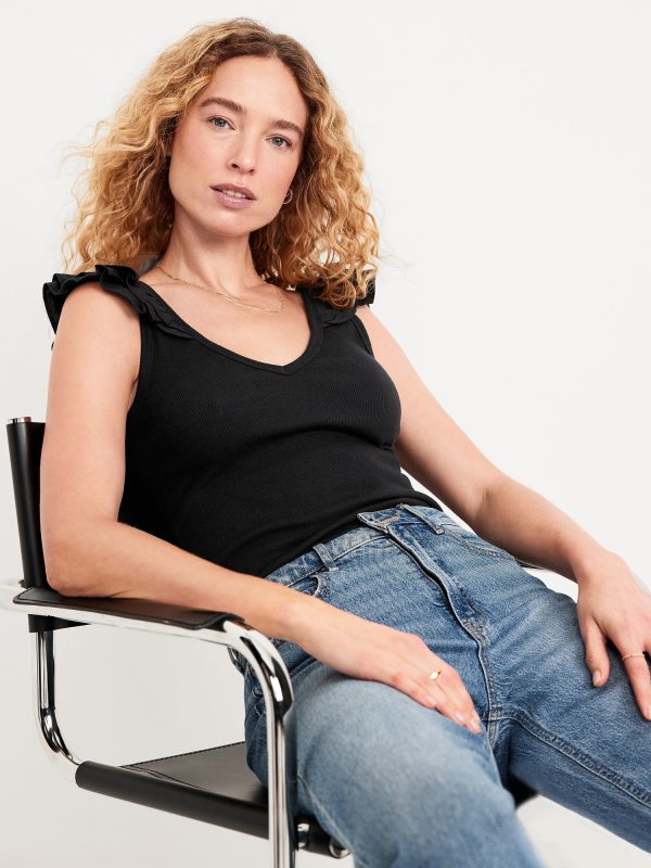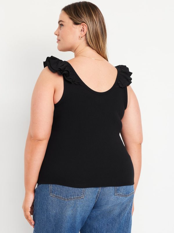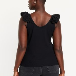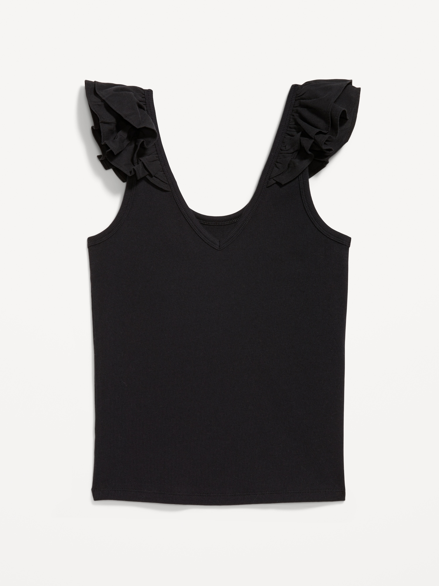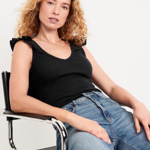 Ruffle-Trim Mixed Material Top: v-neck, ruffled sleeve openings, #686637