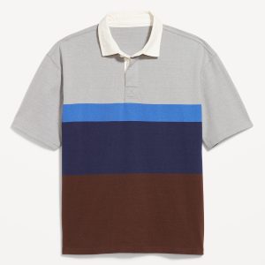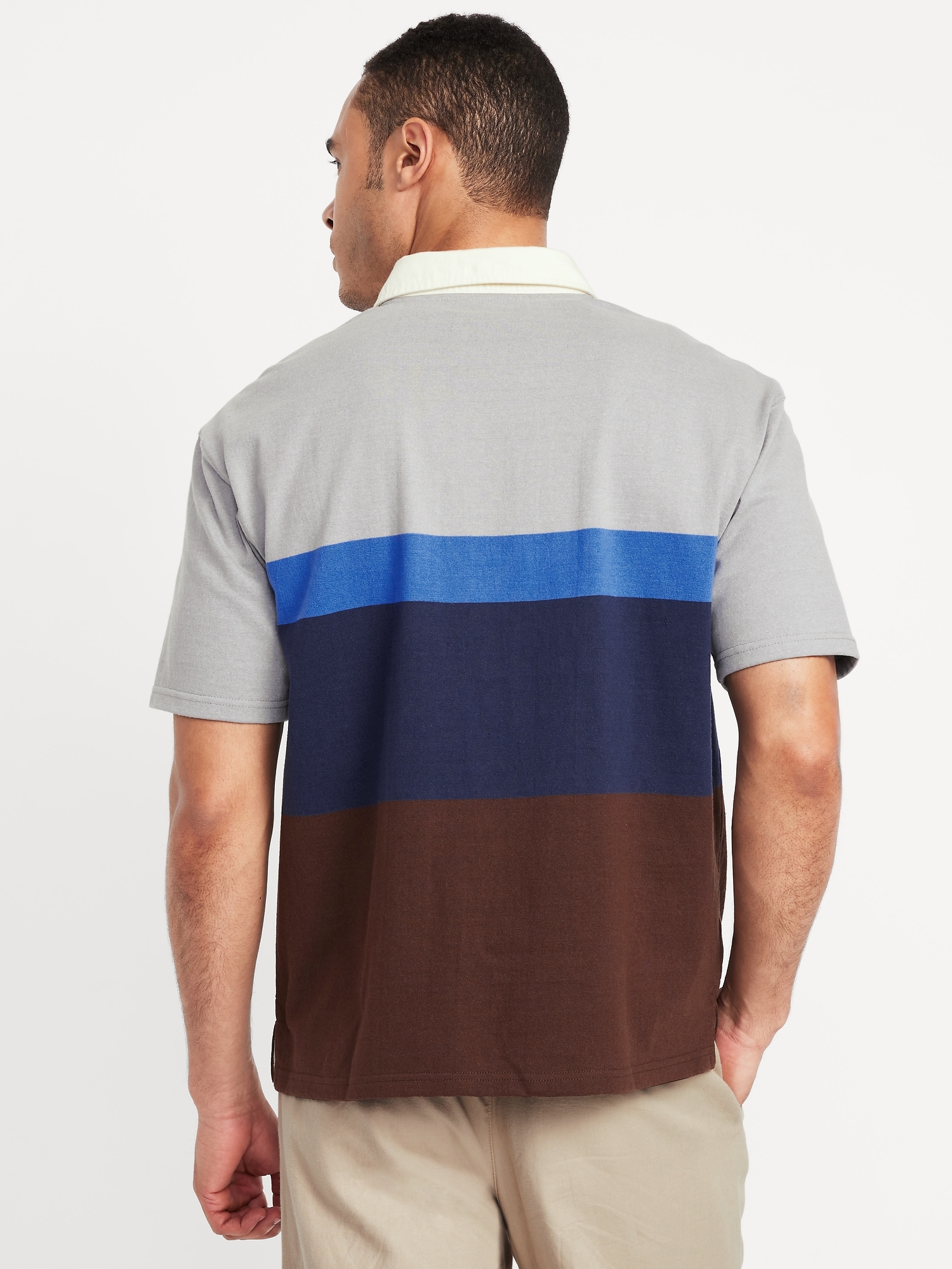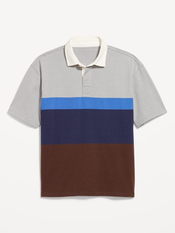 Rugby Stripe Polo: spread collar, short sleeves, buttoned placket, contrasting rugby-style stripes, vented sides, #762339