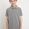 School Uniform Jersey-Knit Polo Shirt for Girls: rib-knit collar, short sleeves, three-button placket, vented sides at hem, #766960