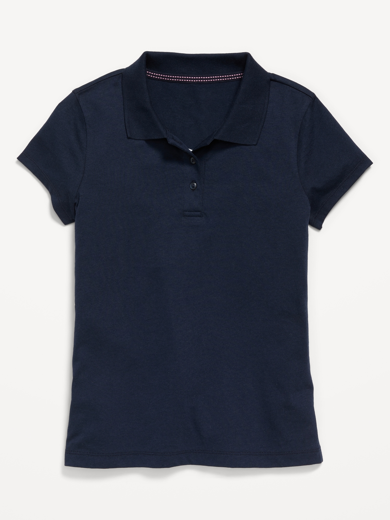 School Uniform Jersey-Knit Polo Shirt for Girls: rib-knit collar, short sleeves, three-button placket, vented sides at hem, #766960