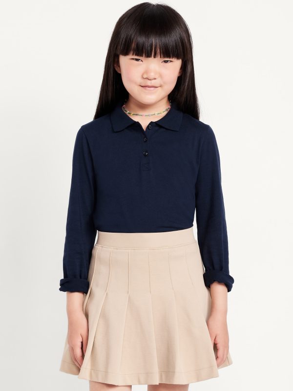 School Uniform Jersey-Knit Polo Shirt for Girls: rib-knit spread collar, long sleeves, three-button placket, vented sides at hem, online exclusive, #766951