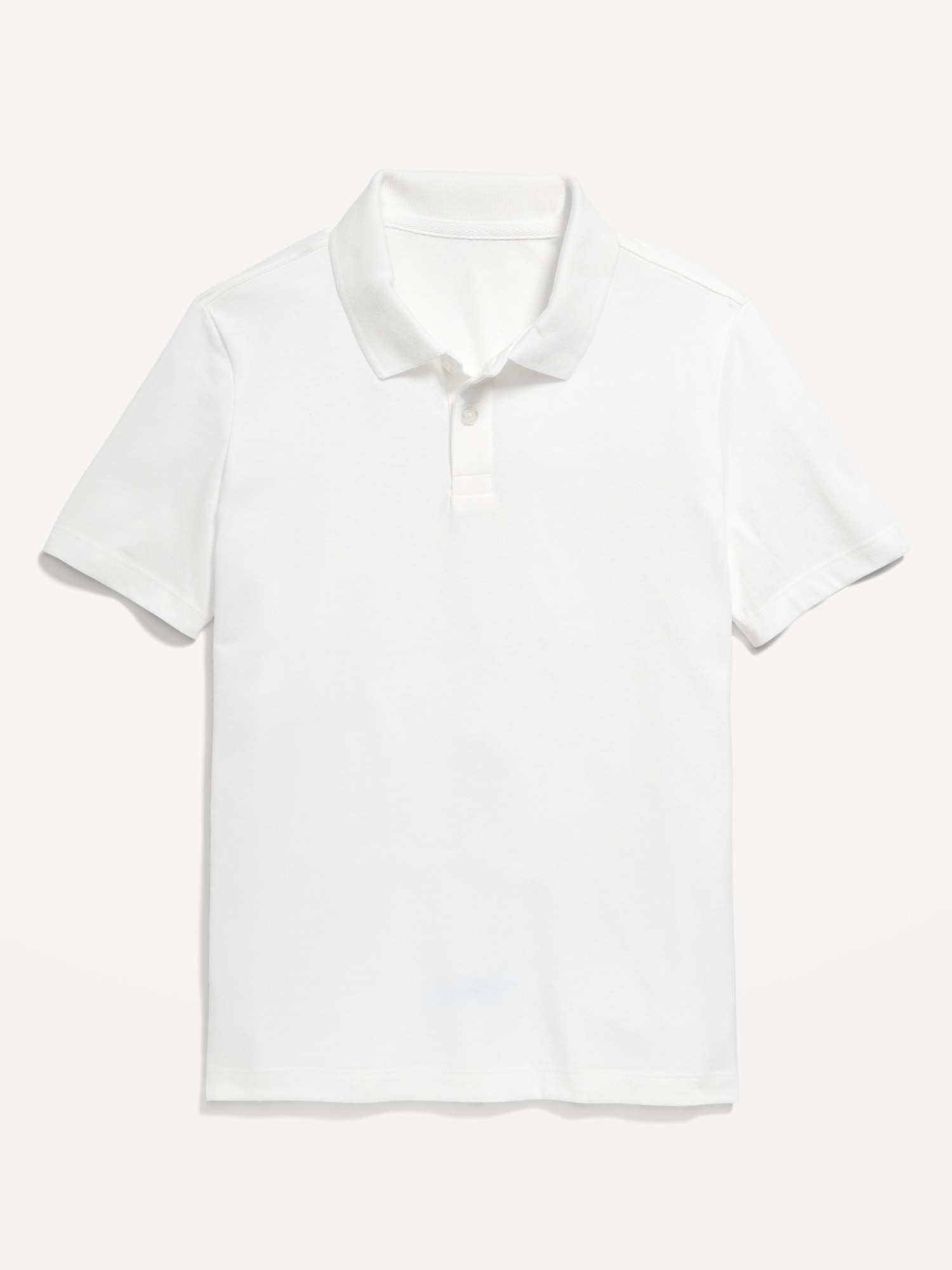 School Uniform Jersey Polo Shirt for Boys: rib-knit collar, two-button placket, short sleeves, #621877