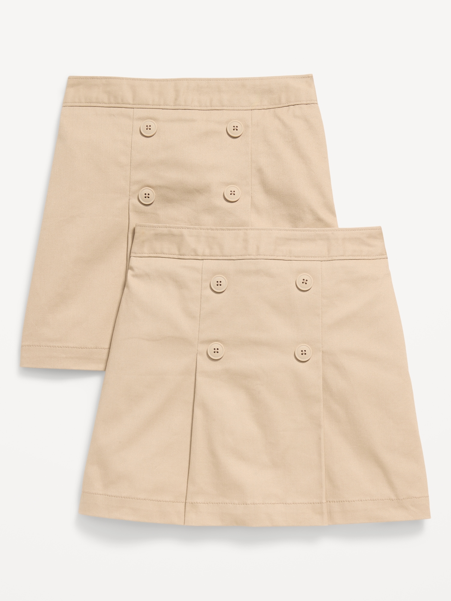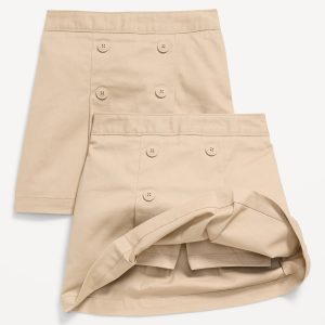 School Uniform Pleated Skort 2-Pack for Girls: built-in shorts, elasticized waistband, decorative buttons at front, #766637