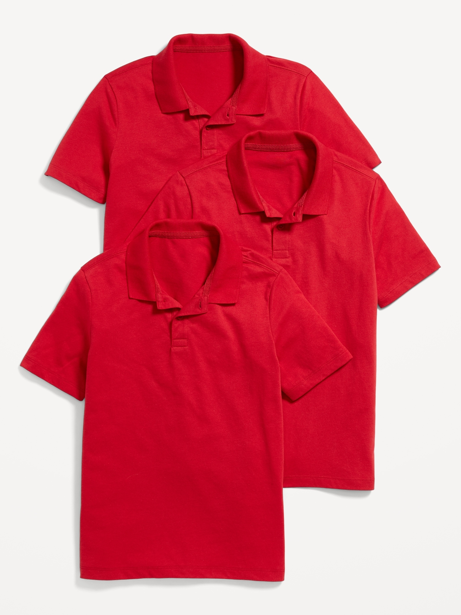 School Uniform Polo Shirt 3-Pack for Boys: pointed rib-knit collar, short sleeves, two-button placket, straight hem, #769950