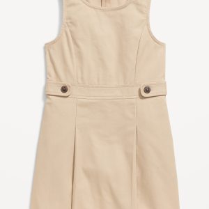 School Uniform Sleeveless Pleated Dress for Girls: scoop neck, sleeveless, full length zipper at back, decorative button tabs at waist, pleated skirt, #766641