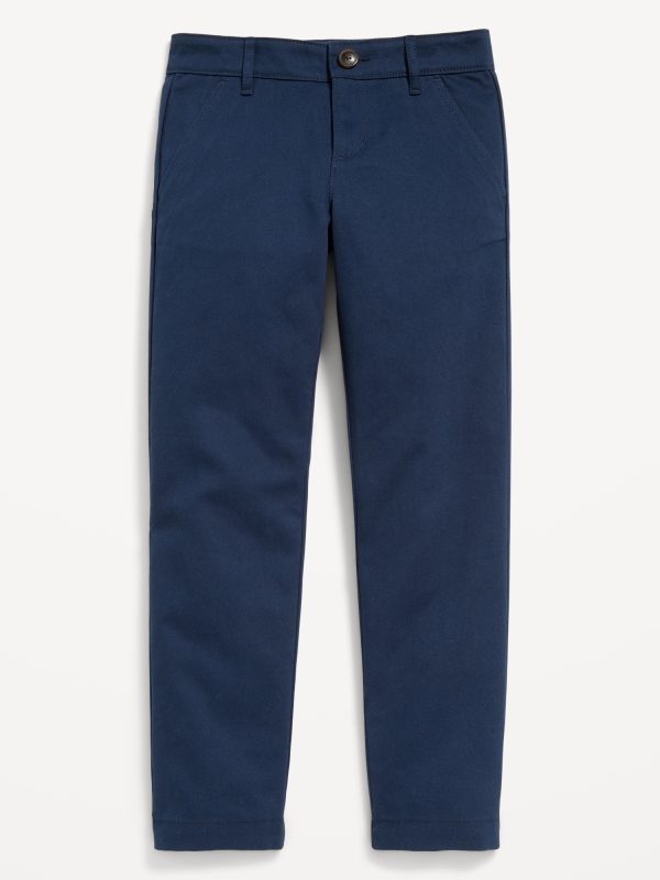 School Uniform Straight Leg Pants for Girls: interior adjustable waistband, sizes 5-8 snap-decorative button closure, sizes 10-20 regular button closure, zip fly, slant pockets in front, decorative welt pockets in back, #767121