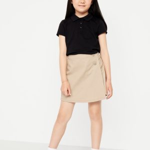 School Uniform Wrap-Front Skort for Girls: built-in shorts, elasticized back waist, decorative buttons, easy pull-on style, online exclusive, #766640