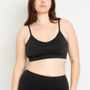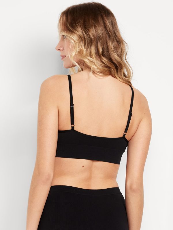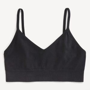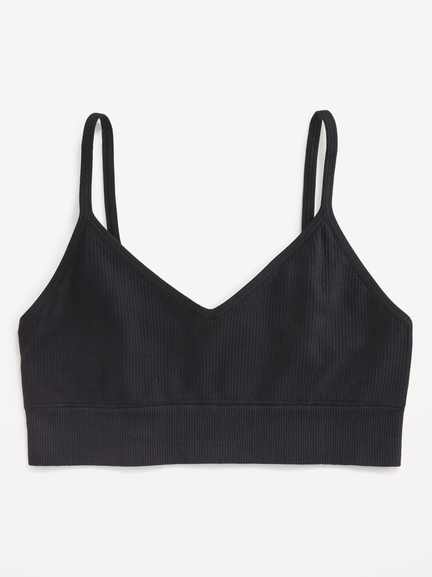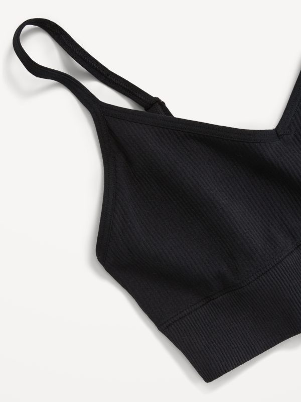 Seamless Ribbed Longline Bra: soft v-neck, adjustable elastic straps, #800557