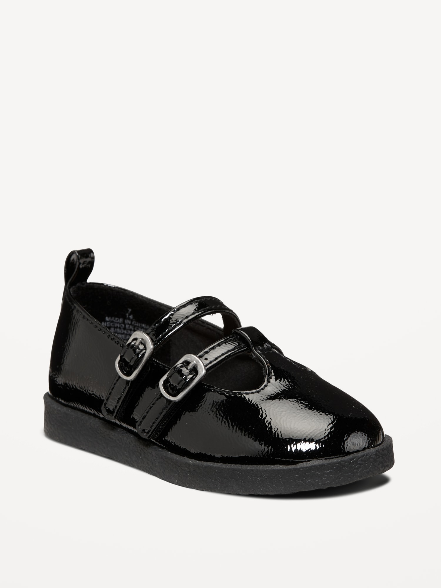 Shiny Faux-Leather Double-Buckle Mary Jane Shoes for Toddler Girls: double buckle across foot, cushioned footbed, chunky heel, pull tab at heel, #804386