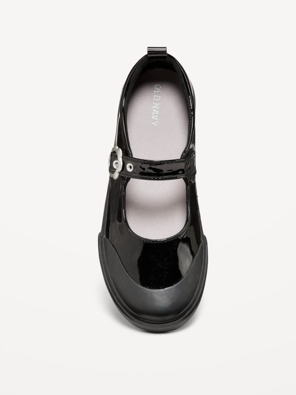 Shiny Faux-Leather Mary-Jane Sneaker for Girls: buckled mary-jane strap across foot, round toe, cushioned foot bed, textured outsole, thermoplastic rubber midsole, #762465