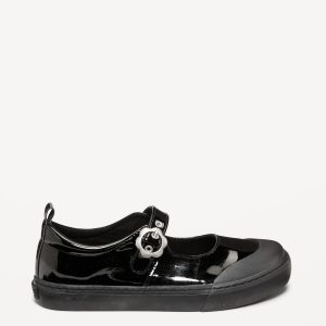 Shiny Faux-Leather Mary-Jane Sneaker for Girls: buckled mary-jane strap across foot, round toe, cushioned foot bed, textured outsole, thermoplastic rubber midsole, #762465