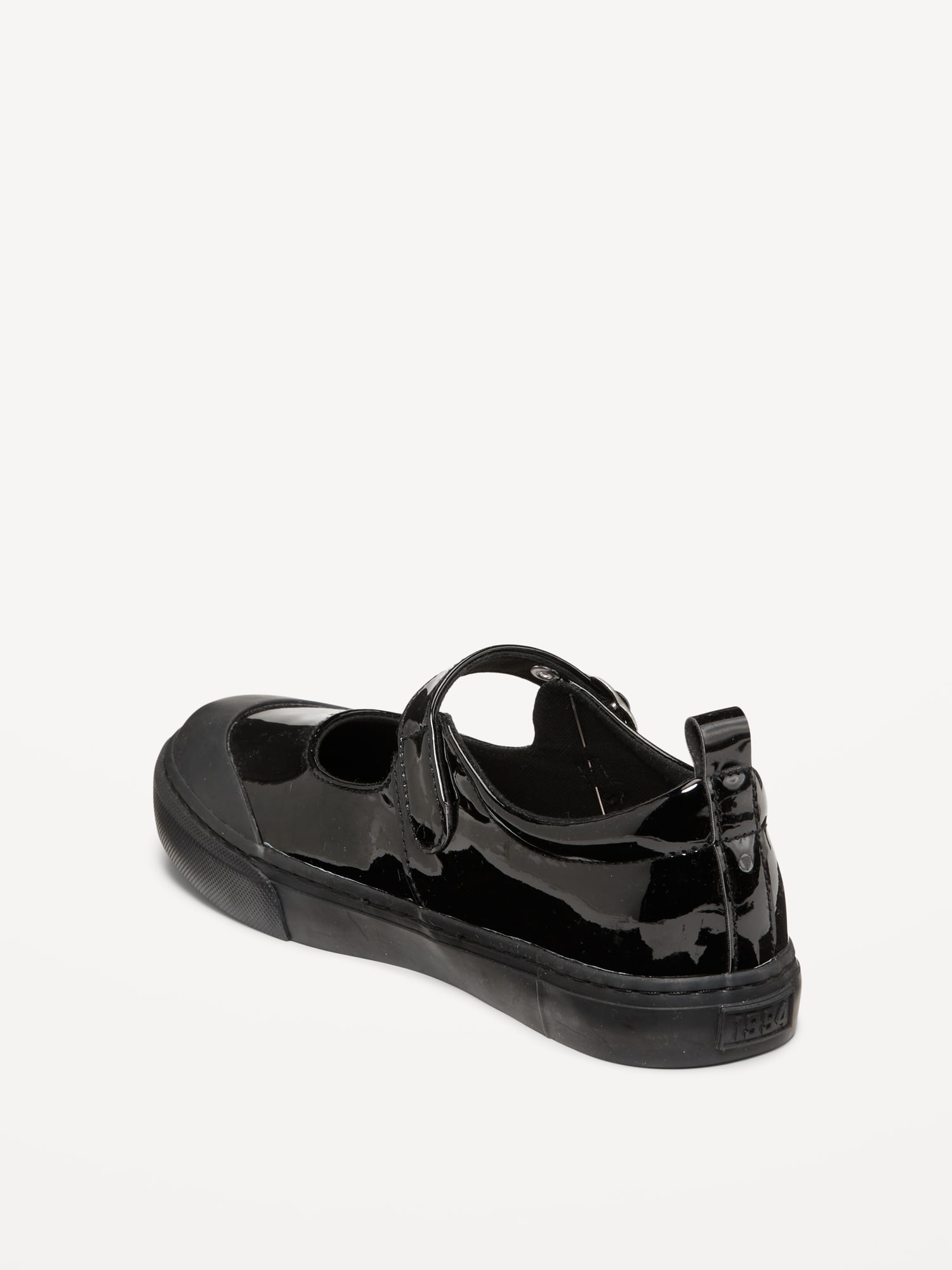 Shiny Faux-Leather Mary-Jane Sneaker for Girls: buckled mary-jane strap across foot, round toe, cushioned foot bed, textured outsole, thermoplastic rubber midsole, #762465