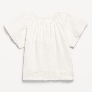 Short Flutter-Sleeve Crochet-Trim Top for Girls