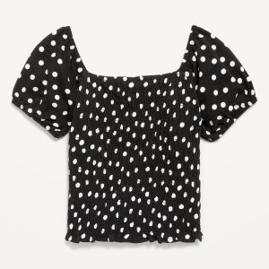 Short Puff-Sleeve Smocked Top for Girls: square neckline, short puff sleeves, smocked bodice, #767944