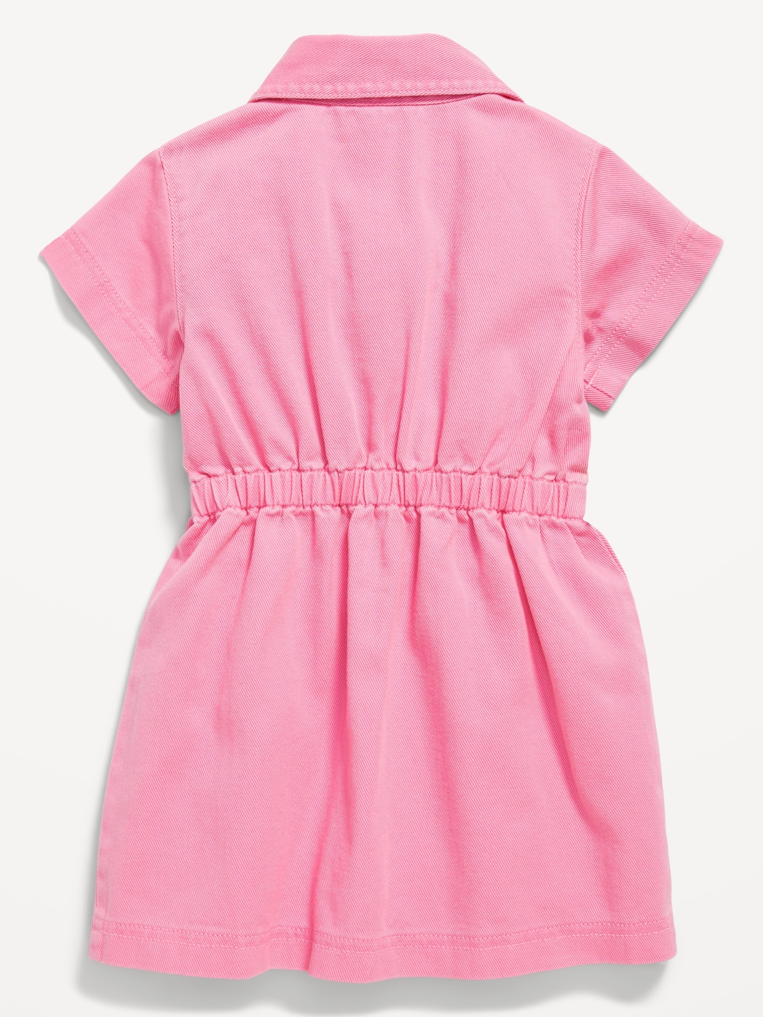 Short-Sleeve Cinched-Waist Twill Dress for Toddler Girls