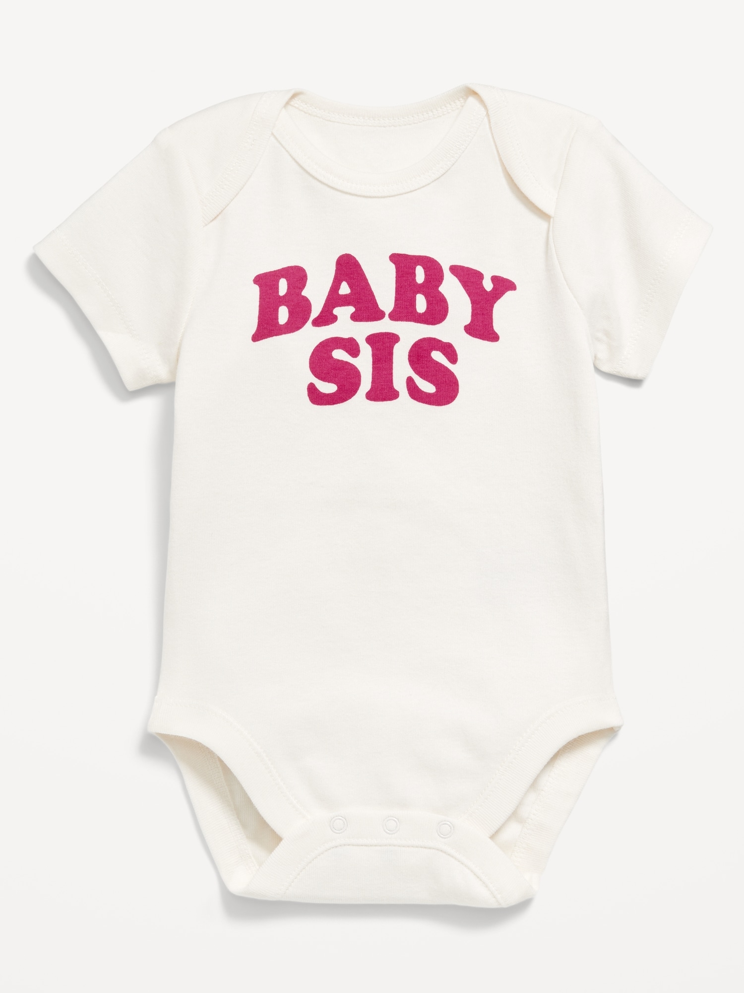 Short-Sleeve Graphic Bodysuit for Baby: envelope neckline, short sleeves, graphic at front, snaps at inseam, #785043