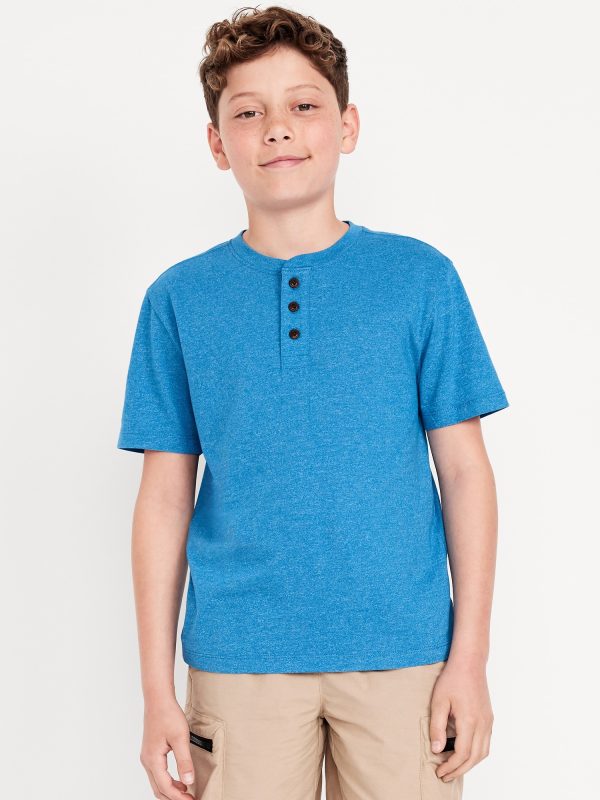 Short-Sleeve Henley T-Shirt for Boys: crew neck, short raglan sleeves, three-button henley placket, color block, #756921