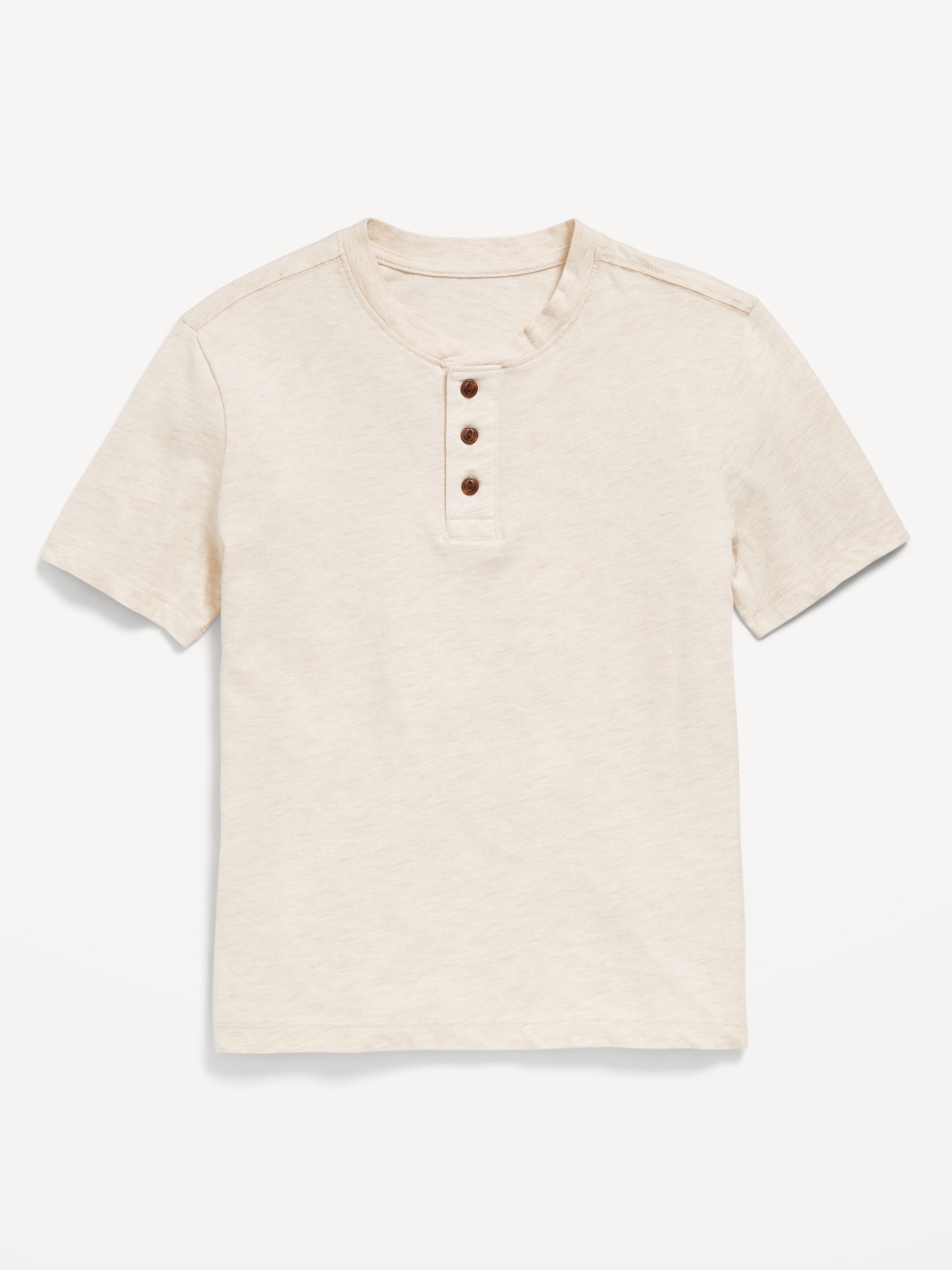 Short-Sleeve Henley T-Shirt for Boys: crew neck, short raglan sleeves, three-button henley placket, color block, #756921